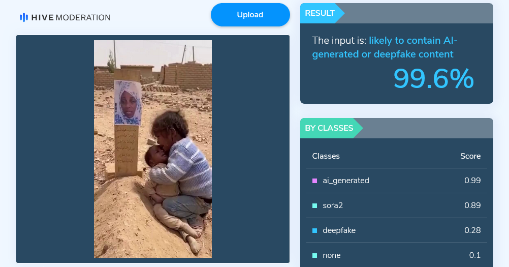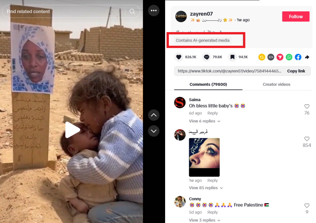 सूडान में माँ की कब्र पर रोते हुए बच्चों का वीडियो AI जेनरेटेड है