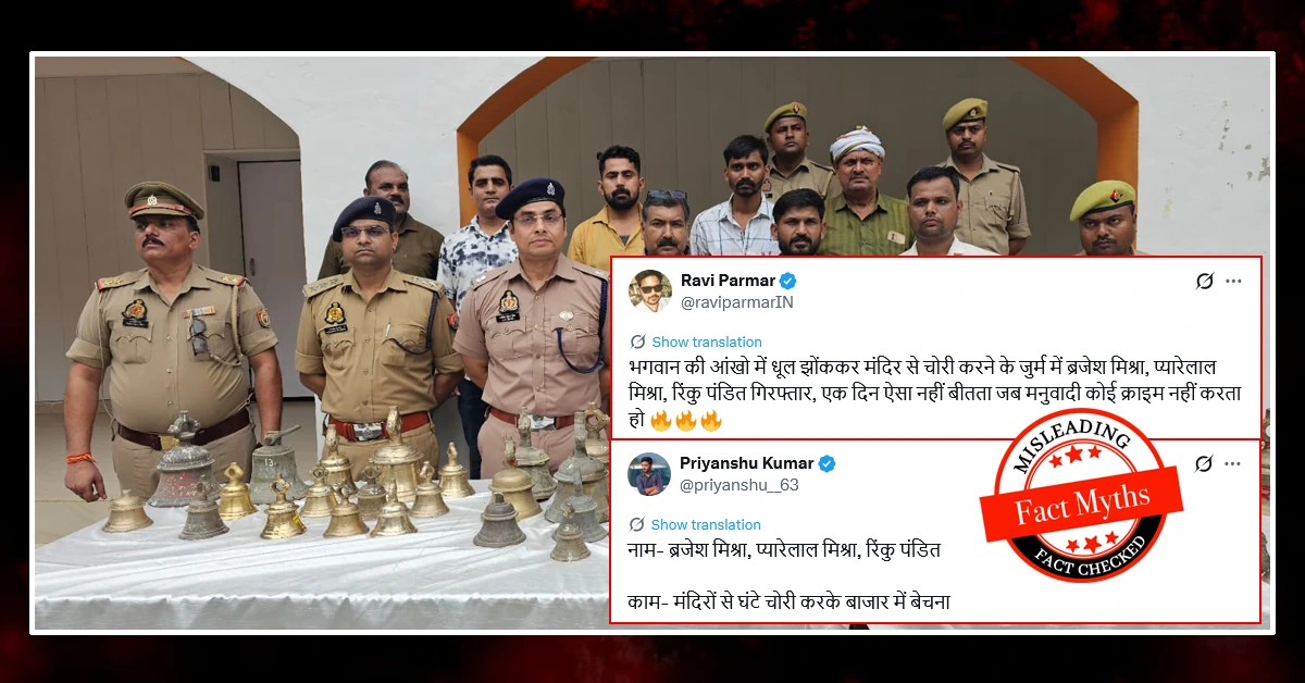 बीते दिनों से सोशल मीडिया में एक वीडियो वायरल है, इस वीडियो के साथ दावा है मंदिरों से घंटे चोरी की घटना में पुलिस ने तीन ब्राह्मणों को पकड़ा है।