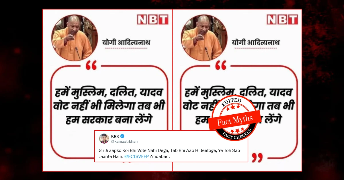 बीते दिनों से सोशल मीडिया में एनबीटी का एक पोस्टकार्ड वायरल है। दावा है कि सीएम योगी आदित्यनाथ ने एक बयान में कहा कि हमे दलित, मुस्लिम, यादव का वोट नहीं मिलेगा तब भी हम सरकार बना लेंगे।