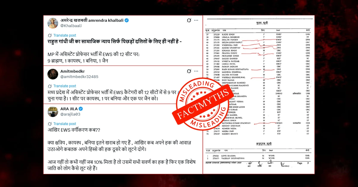 मध्य प्रदेश में असिस्टेंट प्रोफेसर भर्ती में 12 EWS सीटों पर 9 ब्राह्मणों के चयन की बात गलत है