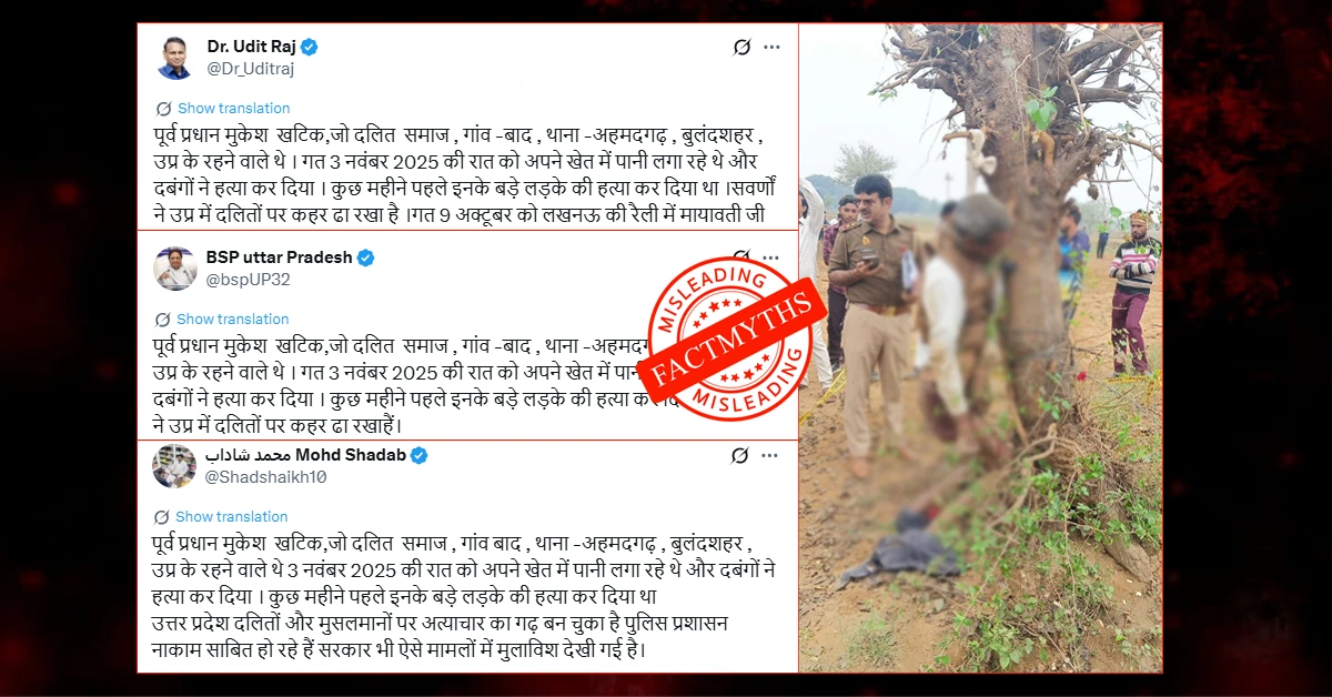 मधुर यादव ने लिखा, ‘उत्तर प्रदेश के बुलंदशहर ज़िले में दलित समाज से आने वाले पूर्व ग्राम प्रधान मुकेश खटिक की खेत में पानी लगाते समय दबंग सवर्ण जाति के लोगो ने हत्या कर दी गई। यह घटना 3 नवंबर 2025 की रात की बताई जा रही है। मृतक गांव बाद,थाना अहमदगढ़ के निवासी थे। कुछ महीने पहले उनके बड़े बेटे की भी हत्या कर दी गई थी,जिसका न्याय अभी तक परिवार को नहीं मिला। गौरतलब है कि 9 अक्टूबर को लखनऊ में बसपा प्रमुख मायावती ने अपनी रैली में योगी सरकार की सराहना की थी। अब इस ताज़ा घटना ने एक बार फिर सवाल खड़ा कर दिया है कि क्या उत्तर प्रदेश में दलितों की सुरक्षा सिर्फ़ भाषणों तक सीमित रह गई है!’