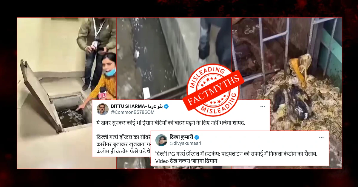 बीते दिनों से सोशल मीडिया में दो वीडियो वायरल हैं। इन वीडियो के साथ लोग दावा कर रहे हैं कि दिल्ली के गर्ल्स हॉस्टल के सीवर और नाले में सैकड़ों कंडोम मिले हैं।