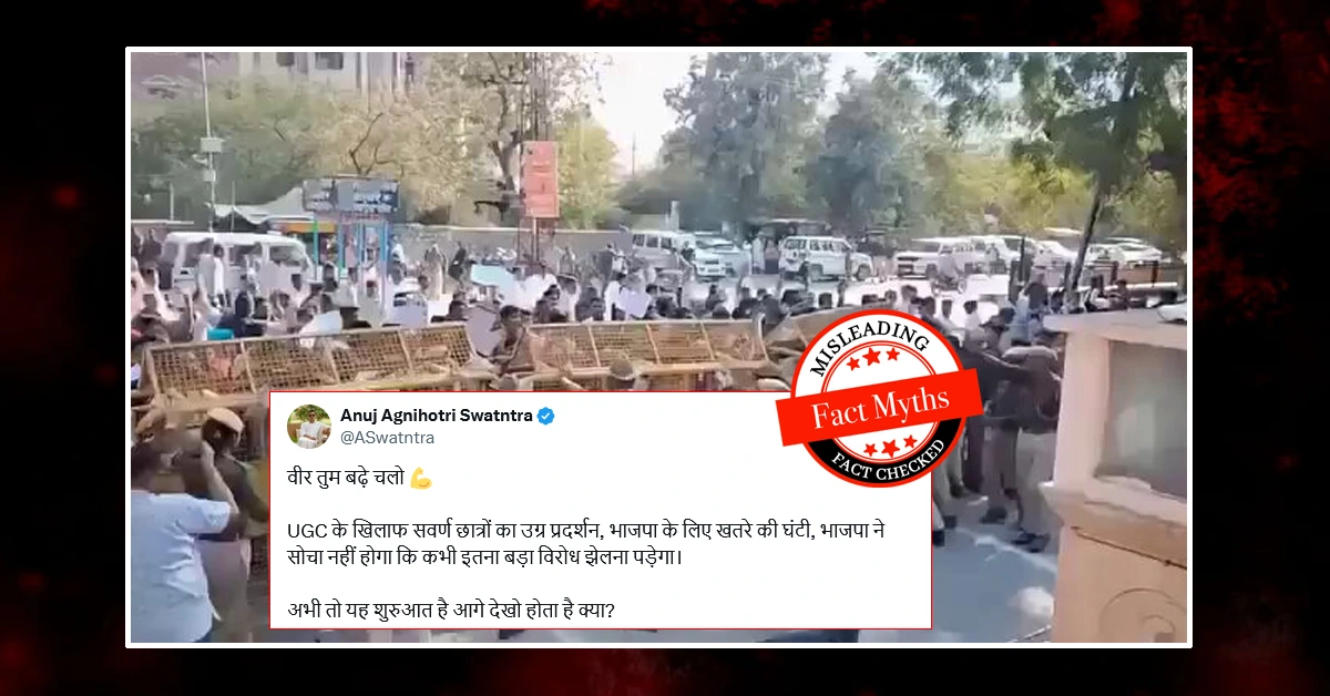 यूजीसी के नए नियमों को लेकर सवर्ण समाज का विरोध प्रदर्शन लगातार तेज है। सामान्य वर्ग के छात्र और संगठन इन नियमों के विरोध में उतर चुके हैं। इसी बीच सोशल मीडिया में एक वीडियो वायरल है, इस वीडियो को यूजीसी के खिलाफ विरोध प्रदर्शन का बताया जा रहा है।