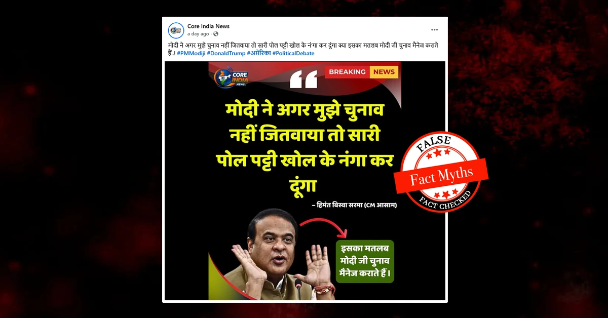 पूर्वोत्तर राज्य असम में नौ अप्रैल को विधानसभा चुनाव 2026 का मतदान हो चुका है। बीजेपी जहां जीत की हैट्रिक लगाने का सपना देख रही है वहीं कांग्रेस गठबंधन उसे सत्ता से हटाने का दावा कर रहा है। इस बीच सोशल मीडिया में असम सीएम हिमंत सरमा के नाम पर पोस्टकार्ड वायरल है। जिसके मुताबिक उन्होंने कहा कि मोदी ने अगर मुझे चुनाव नहीं जितवाया तो सारी पोल पट्टी खोलकर नंगा कर दूंगा।
